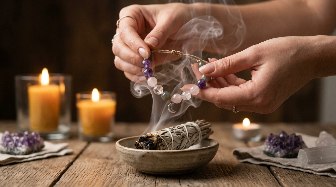 - Smoke Cleansing: Pass the bracelet through incense or sage smoke.
